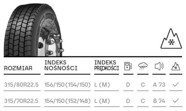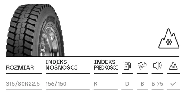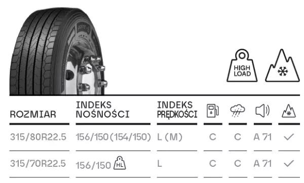 | Wysokie obciazenie mozliwe dzieki oponie 315/70R22.5 | Kompatybilnosc z samochodami ciezarowymi EURO-6 |
