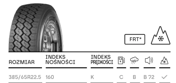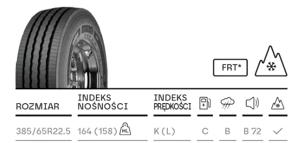 * Skrót FRT »Free Rolling Tyre« jest oznaczeniem prawnym opony zgodnym z regulaminem EKG ONZ nr 54, który wskazuje, ze opona jest przeznaczona do montazu na osiach przyczep, naczep oraz dodatkowych osiach pojazdów silnikowych, ale nie na osiach napedowych ani przedniej osi kierowanej. Opony FRT charakteryzuja sie zazwyczaj